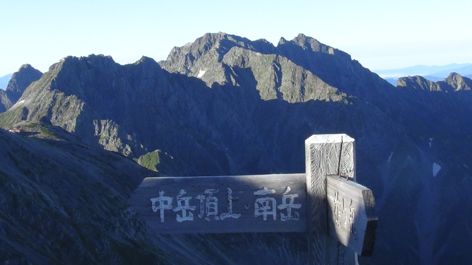 槍ヶ岳から1時間20分で中岳に到達しました。